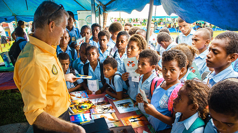 Las casi 330 islas Fiyi abundan con belleza, centros vacacionales con todo incluido, cruceros y buceo, así como los turistas que vienen con ellos. Pero la Gira de Buena Voluntad del Pacífico Sur de los Ministros Voluntarios fue allí para ayudar a aquellos que ayudan a los demás, la verdadera belleza de Fiyi: la gente de Fiyi. La gira tenía su base en Suva, la capital de Fiyi, en la isla más grande, Viti Levu.
