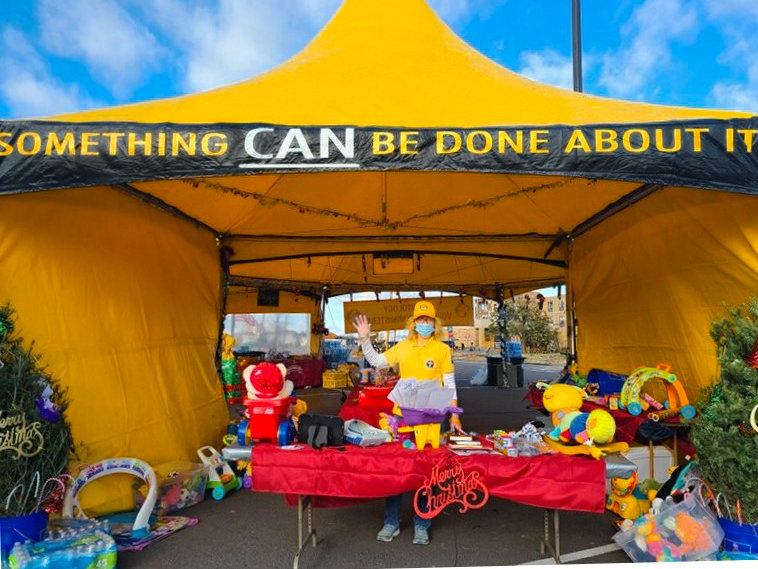 Un marinero retirado donó cientos de juguetes para la mesa de los niños en la carpa de los Ministros Voluntarios “para que los niños tuvieran una Navidad”.