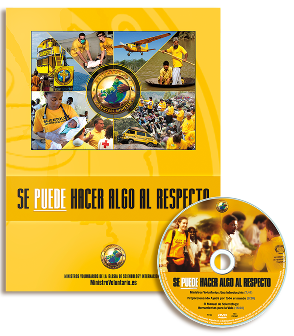 - Un folleto que muestra a los Ministros Voluntarios de Scientology trabajando por todo el mundo con testimonios de personas a las que han ayudado